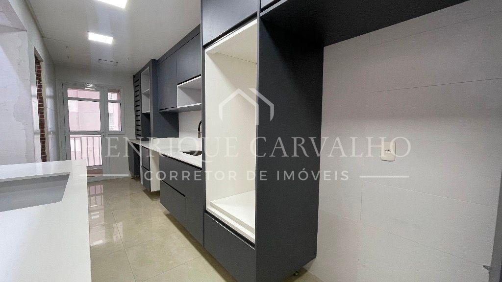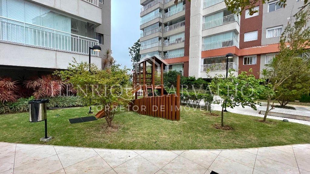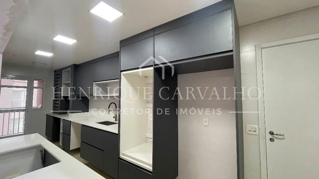 Possui sala 2 ambientes com varanda gourmet, cozinha americana planejada com ilha, área de serviço planejada, terraço técnico, 3 dormitórios com suítes sendo um deles com sacada, lavabo, escritório e 2 vagas de garagem cobertas, fixas e com depósito privativo.
