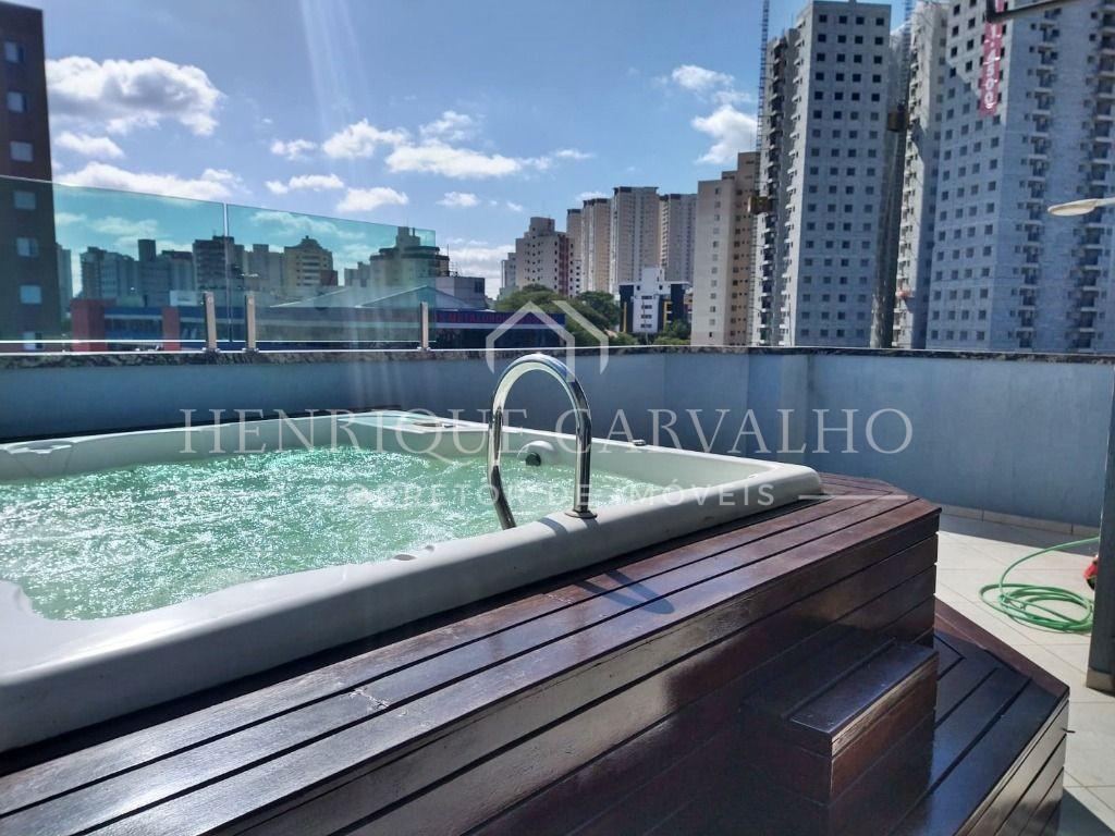 Cobertura com 266m², composta por 3 dormitórios planejados, sendo uma suíte onde ambos possui sacada envidraçada e ar condicionado, sala 2 ambientes integrada a cozinha com armários embutidos, área de serviço, lavabo e 3 banheiros. Andar superior conta com uma ampla sala de Tv integrada a área gourmet com churrasqueira e área externa com uma jacuzzi em deck elevado.