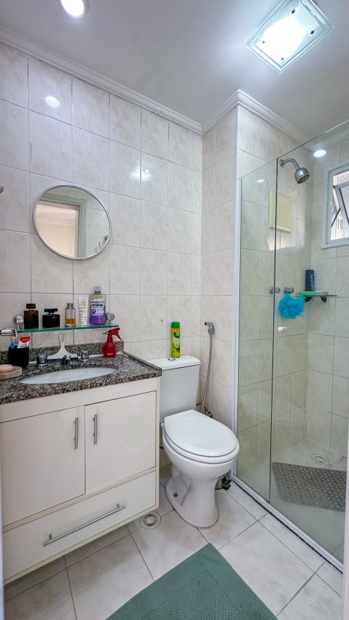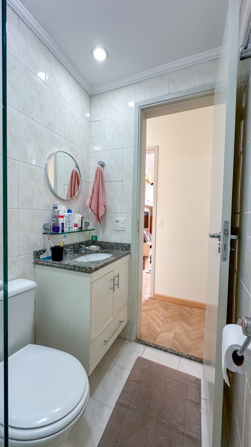 Possui 3 dormitórios planejados, sendo 1 suíte, sala dois ambientes com sacada envidraçada vista livre, cozinha com armários embutidos, WC e 2 vagas de garagem cobertas.