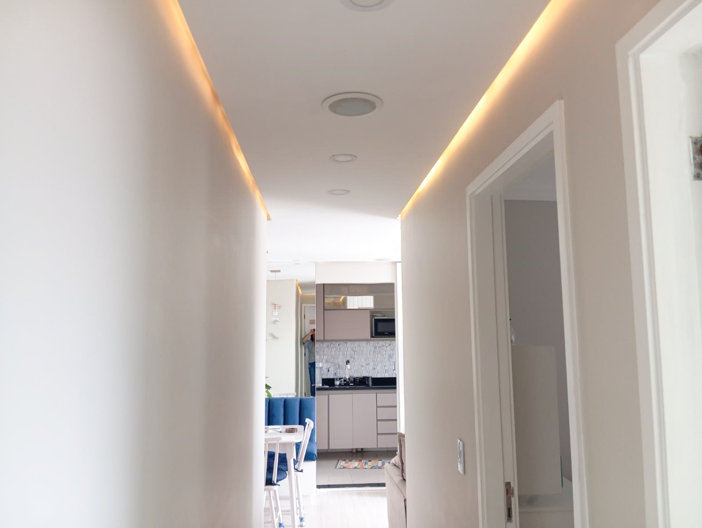 - Teto da sala e corredor com rebaixamento e telas de proteção instaladas em todas as janelas.